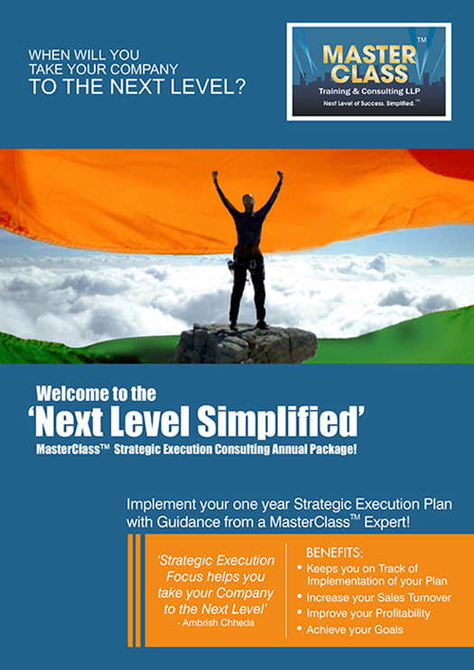 MasterClassTM offers Seminars, Workshops & Consulting services such as Strategy SimplifiedTM , Marketing & Digital Marketing Strategy SimplifiedTM, Retailing Strategy SimplifiedTM ; as well as offers Seminars & Workshops on Finance Strategy SimplifiedTM, Investment Strategy Strategy SimplifiedTM & SoftSkills Strategy SimplifiedTM. The key target audience is Corporate sector, Small & Medium Enterprises, Start-ups, Trade & Industry Associations & Individuals who want to reach the Next Level.